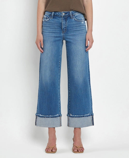 High Rise Cuffed Wide Jeans