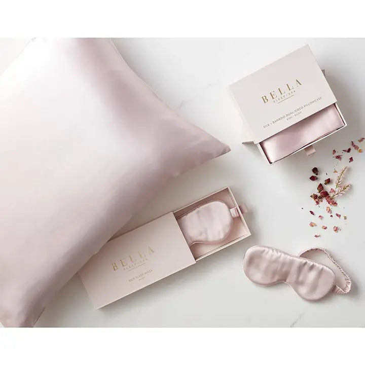 Our luxuriously soft 100% mulberry silk has natural moisturizing properties, making it the perfect material for around your eyes. The tightly-woven fabric keeps moisture close to the skin and stops it from drying out overnight. pure silk sleep masks support a deeper quality sleep with fewer disruptions and aids in consistent mood and energy levels throughout the day. Perfect for everyday beauty sleep at home or while traveling! • Material: 100% Silk • Size: Mask: One Size Fits Most, Box - 5" H x 9.75" W • Care Instructions: Machine Wash Warm, Non-Chlorine Bleach, Hang Dry, Do Not Iron