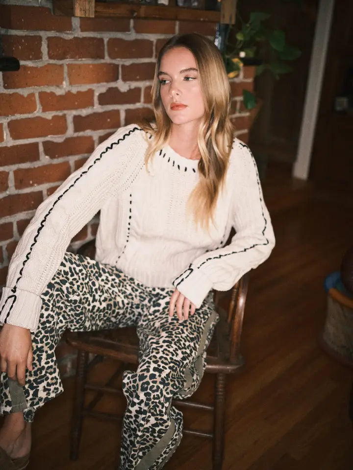 Stitched Detail Cable Sweater Pullover Top